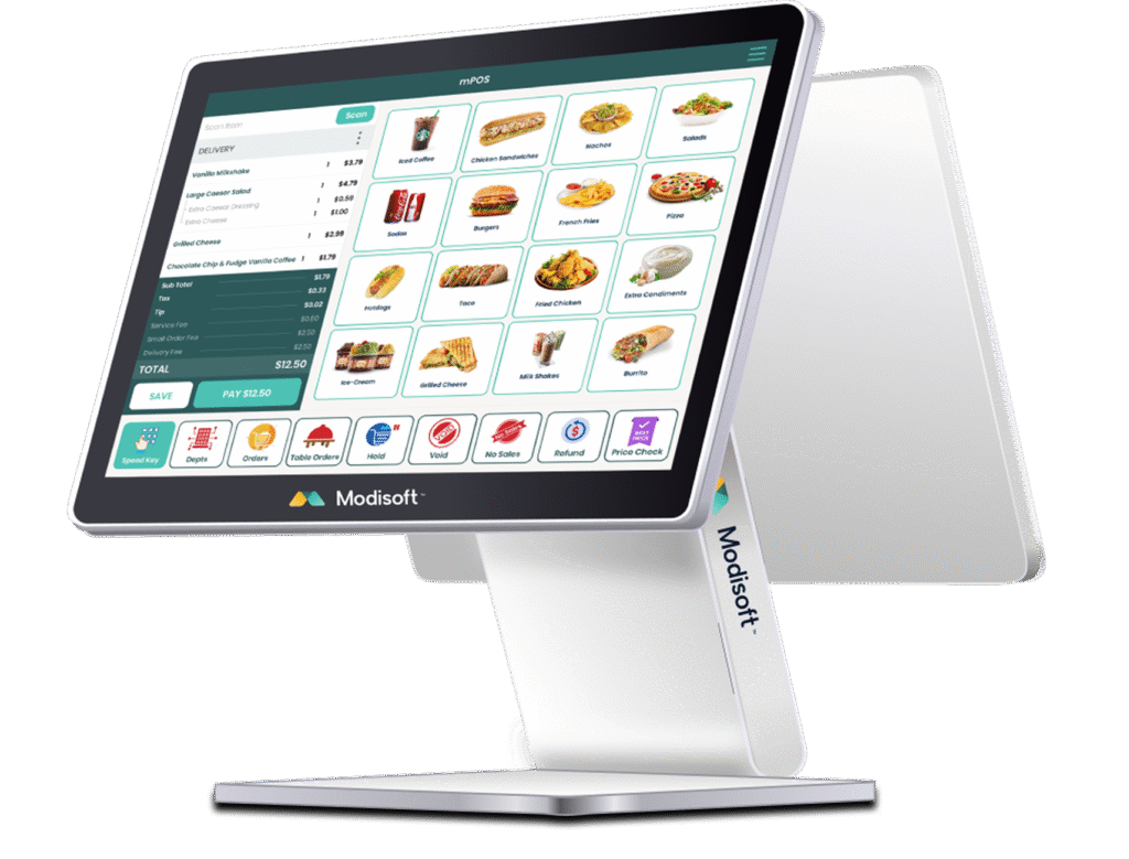 Modisoft M8 POS system is a sleek, all-in-one solution designed to streamline transactions with fast processing and an intuitive touchscreen interface. Made to blend into any retail or restaurant design.